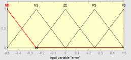 входной переменной «error» определим 5 треугольных термов (рис. 2): NB -