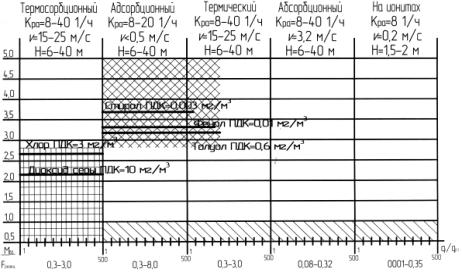 применения способов очистки аварийных вентиляционных выбросов газообразных ВВ в интервале qi/qрз от 1 до 500 установлено, что абсорбционный