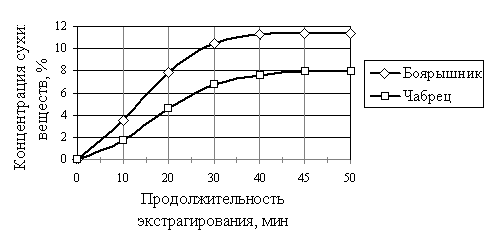 влияние времени процесса на концентрацию сухих веществ. Экстрагирование
