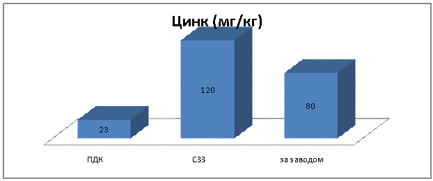 при этом ПДК составляет - 6,0 мг/кг, максимальное значение -120 мг/кг.