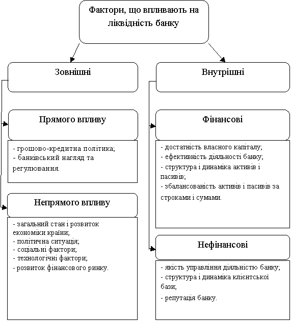 ліквідністю банку безпосередньо ґрунтується на основі факторів, під впливом