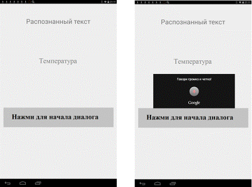 При нажатии на кнопку приложения "Нажми для начала диалога"(рис.1) с