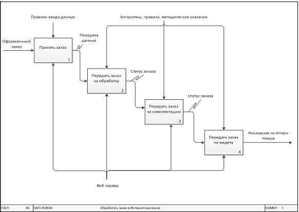 Контекстная диаграмма процесса обработки заказа на web-сайте, дает