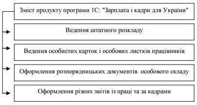 Рис. 1. Зміст програмного продукту 1С: «Зарплата і кадри для України»