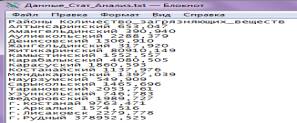 данных. Исходные данные внесем в текстовый файл и сохраним для дальнейшего