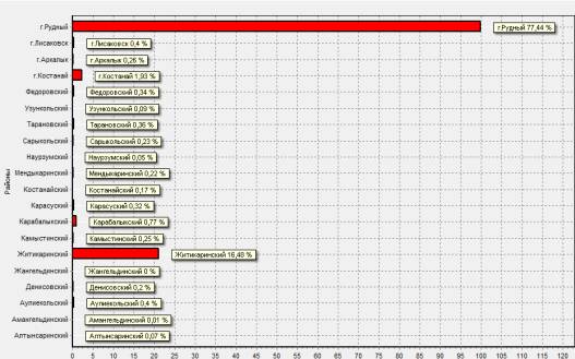 г.Рудном – 77,44% от общего показателя по области и в Житикаинской районе –