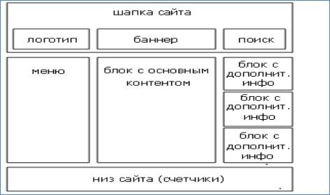 восприятие информации и навигацию на сайте. В первом блоке располагается шапка web–приложения. В четвертом блоке выводится основная