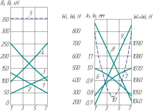 тележки в пролете (1, 3, 5, 7 – расчетные положения тележки): 1 – суммарного