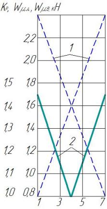 значения сопротивления с учетом трения подшипников; 2 – коэффициента,