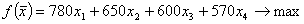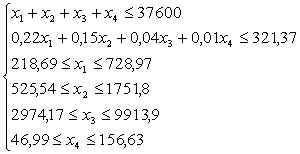(кг), х3 – грудинка (кг), х4 – половинка тушки (кг). На
