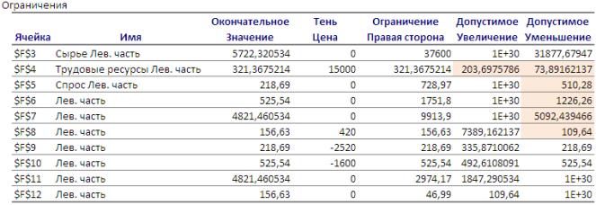 касается удовлетворения спроса, то анализ отчета по устойчивости (Рисунок 3)