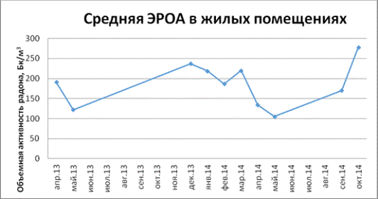 но при этом следует отметить общую высокую объёмную активность радона, в
