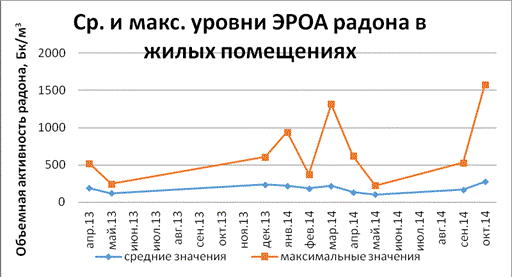 причём в подвальных помещениях ЭРОА радона в среднем в несколько раз выше, чем