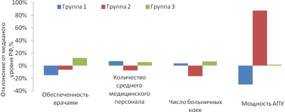 регионов, однородных по уровню обеспеченности медицинскими услугами, выявлены и