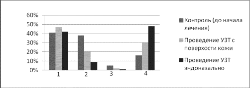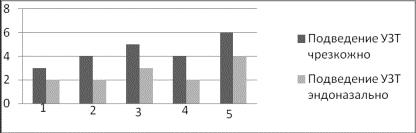более эффективном терапевтическом эффекте эндоназальной УЗТ. В группе пациентов, которые УЗТ с поверхности кожи положительная динамика в лечении наступала на 1–2 дня позже.