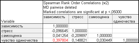 о том, что между стрессом, самооценкой и зависимостью корреляционной связи нет.