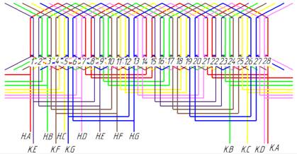 обмотки, которая уложена в статор с количеством пазов равным 28.