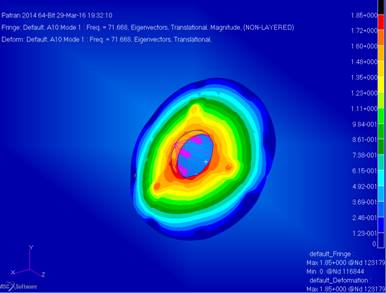 lowest natural frequency is about 82 Hz, and the highest deformation is