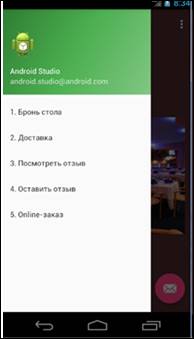 работу мобильного приложения. При нажатии на кнопку выбора бокового меню