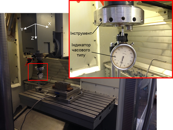 отклонения. Для измерения реального перемещения на стол станка была установлена измерительная головка,