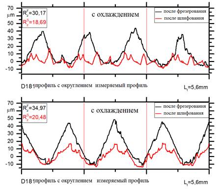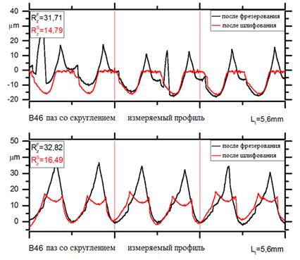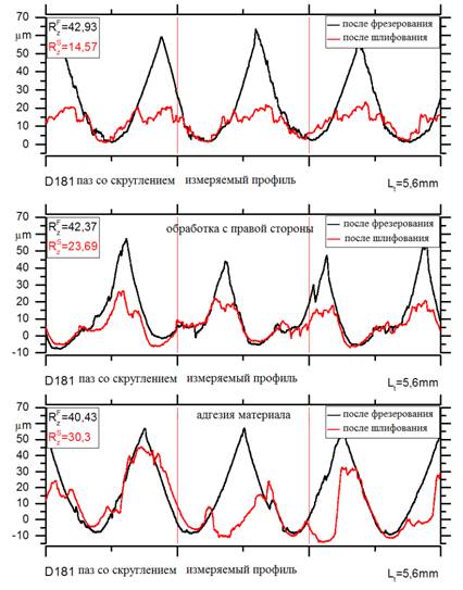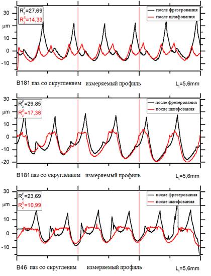 шероховатости после обработки кассетой «паз со скруглением» зерном алмаза D181 можно заметить, что практически