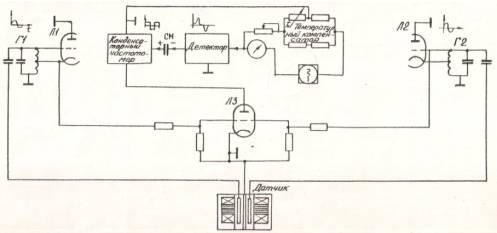 Схема электронного блока [2] выполнена на принципе "биений", которое