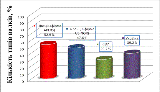 типорозмірів валків з високоміцних чавунів в різних країнах близька [2], найбільша кількість їх