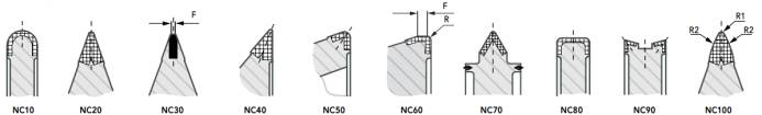 зовнішнього діаметру), радіальний різець, кутній різець, гребінка