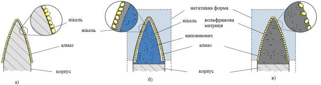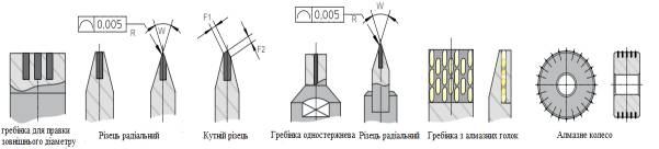 одностержнева, гребінка з алмазних голок та алмазне колесо (рис. 5.).