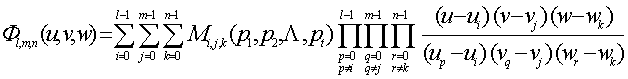 де l, m, n − кількість вузлів інтерполяції уздовж кожного її