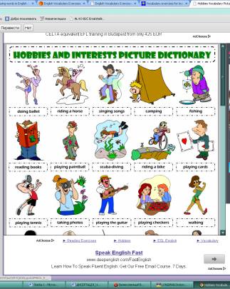 many of which can be downloaded and printed (e.g. Pict. 4, taken from http://www.englishwsheets.com/hobbies-1.html).