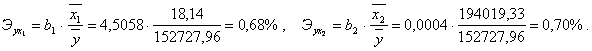 средние по совокупности коэффициенты эластичности: