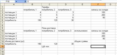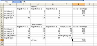 плана перевозок, соответствующего минимальному значению ЦФ, воспользуемся