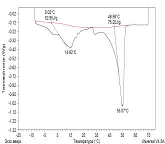 +55 ºС. Первый эффект соответствует температуре плавления