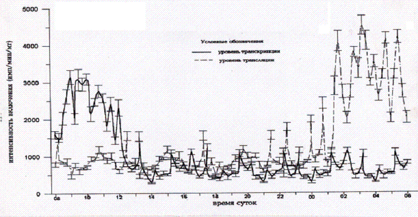 составляющая в активную фазу суточных ритмов синтеза первичных генных продуктов