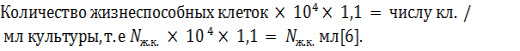 объёмом 10 мл, которые содержали не менее8•104 клеток/мл. |