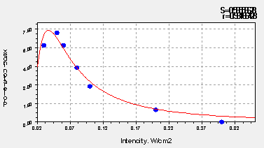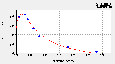 клеток, использовали интенсивности от 0,06 до 0,3 Вт/см2, т.к. был