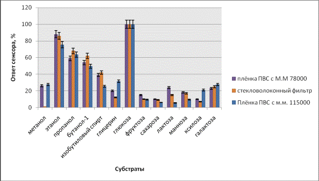 биорецепторных элементов. В качестве модельного субстрата использовали глюкозу