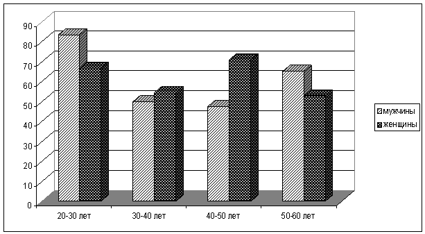 этапом исследования явилось изучение влияния возраста и пола доноров на выработку АТ к вирусу гепатита В (рис. 2).