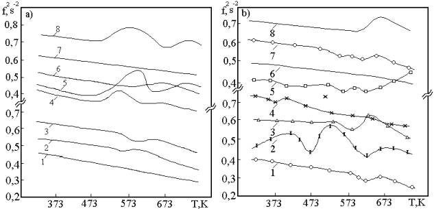 Температурні залежності модуля зсуву (квадрата частоти f2)