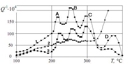 прояв на температурних і амплітудних залежностях внутрішнього тертя ряду