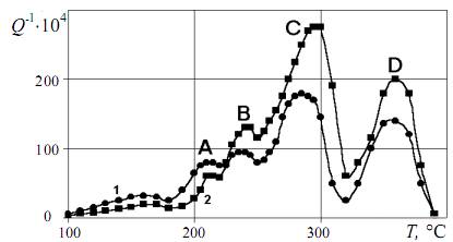 Рис.1. Температурна залежність внутрішнього тертя алюмінію після деформації