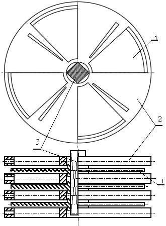 комплекта неподвижных секторных дисков 2, между которыми установлены подвижные