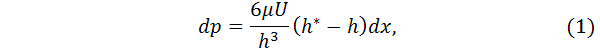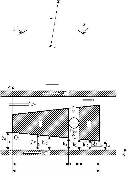 скоростью U, и неподвижной поверхностью при текущей толщине клинового зазора h, можно