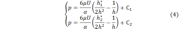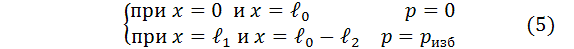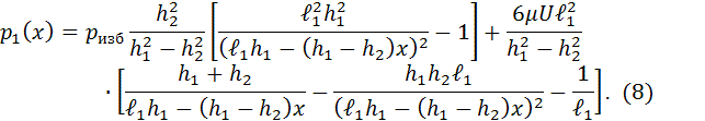 плоском клиновом зазоре известно, что распределение давления жидкости по длине