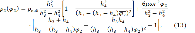 распределения давления жидкости под секторами напорных подушек примут вид: