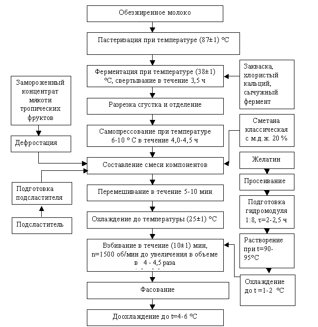 сырья и наполнителей; пастеризация обезжиренного молока, охлаждение, внесение