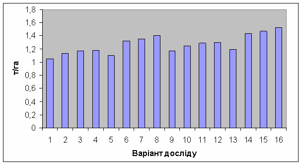 Радостимом перед сівбою він був менше на 0,07; 0,08 і 0,10 т/га відповідно.