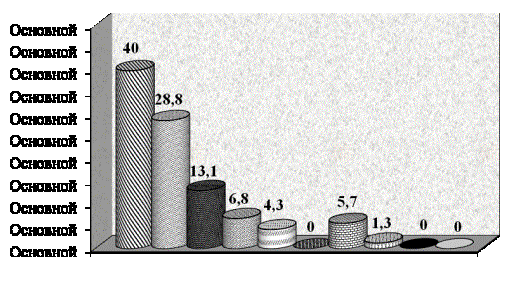 відповідно 13,1, 6,8, 4,3 та 0%. Вони зустрічались у зразках крові 21, 11 та 7