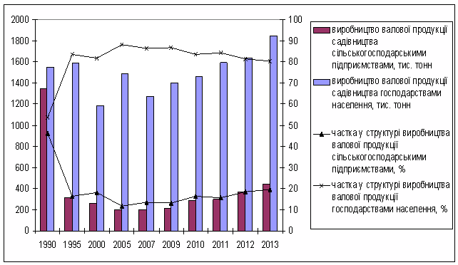 плодів і ягід у господарствах населення пояснюється тим, що плодоягідна галузь